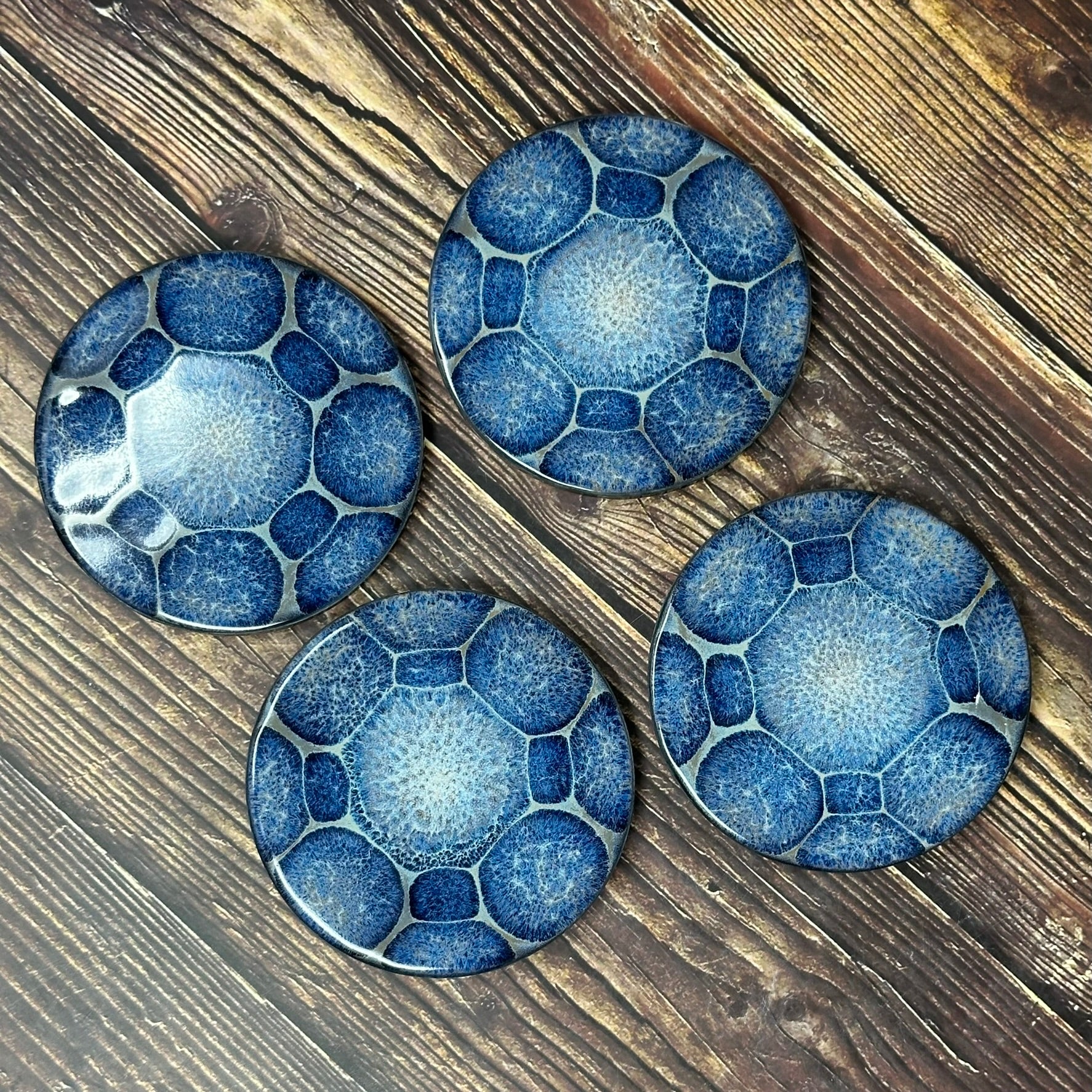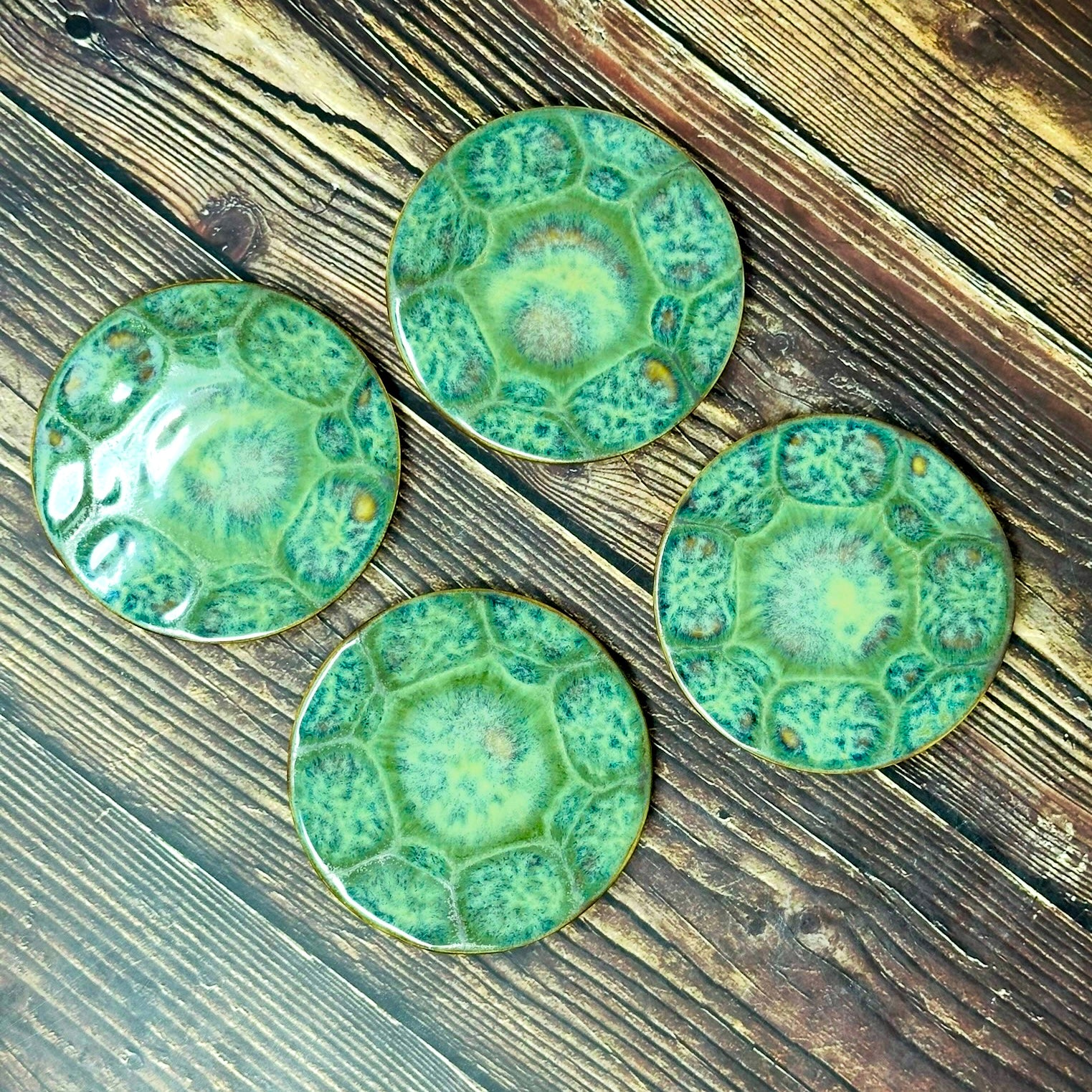Handmade ceramic coasters, crafted for everyday use. Each set of four features unique glaze variations, adding a natural, artisanal touch to your table. Three glazing options to choose from.